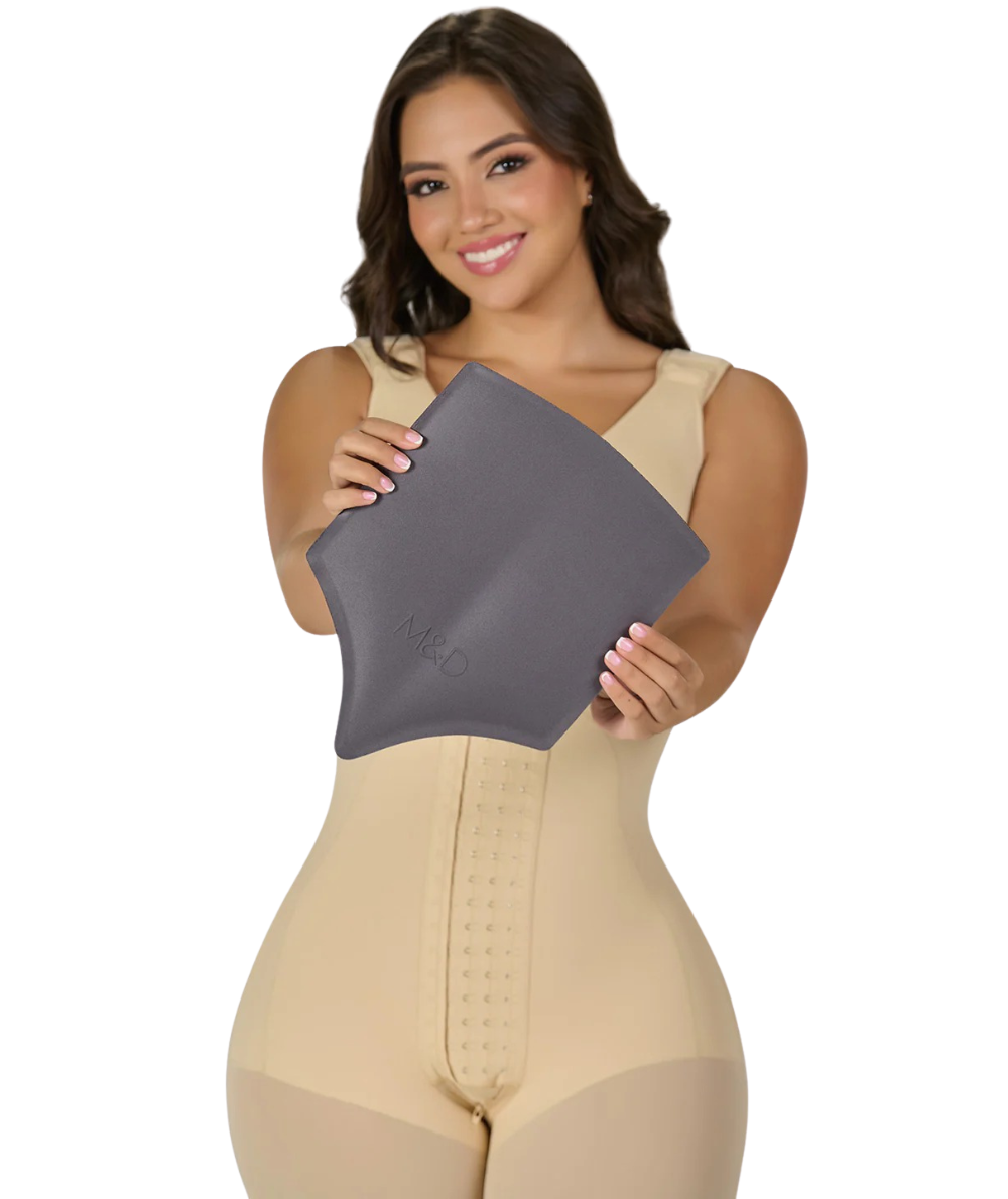 Lumbar foam molder compression for post-surgical use, an excellent complement for recovery after an aesthetic procedure, prevents fluid retention in the lower back area.